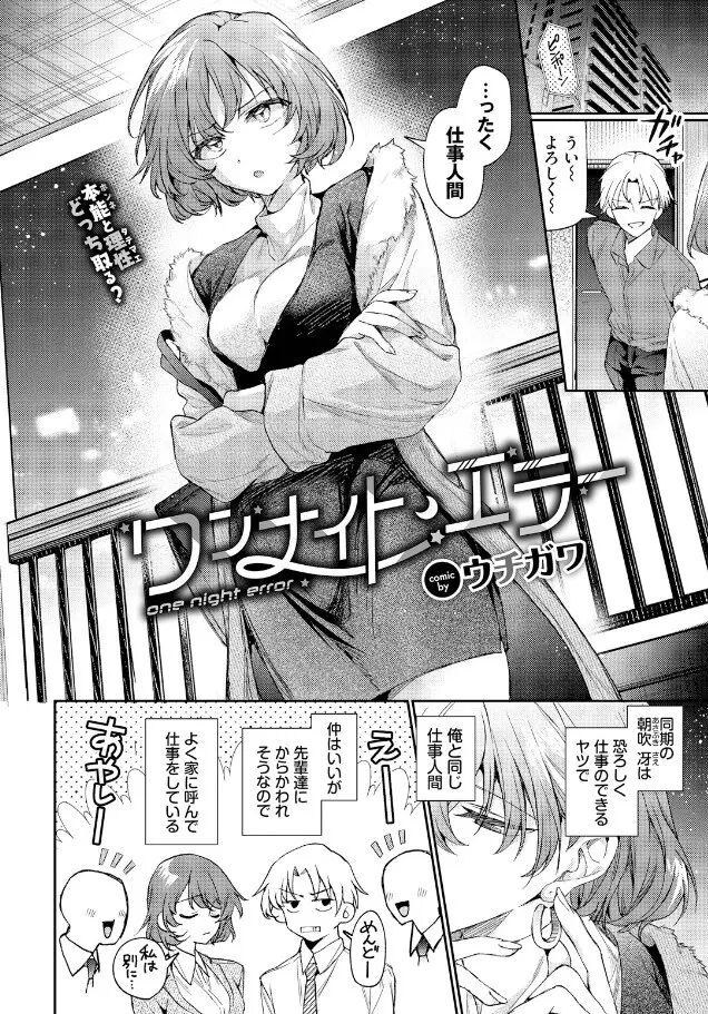 ミステリアスな同僚女性と残業中にえっちな雰囲気になり、そのまま本番までしちゃうウチガワ先生が描くエロ漫画です!